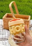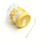 Hoho 450ml Printed Glass Coffee Mug with Lid & Straw – Leak-Proof Borosilicate Glass Tumbler (Yellow)